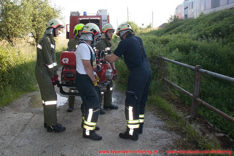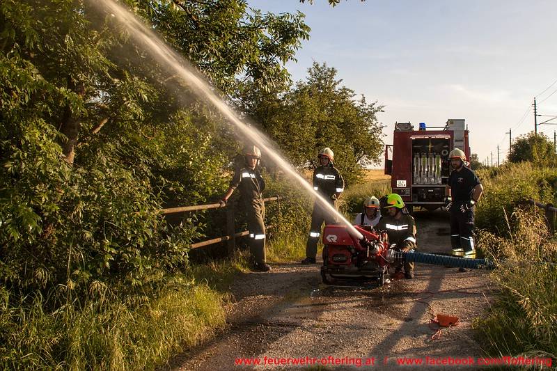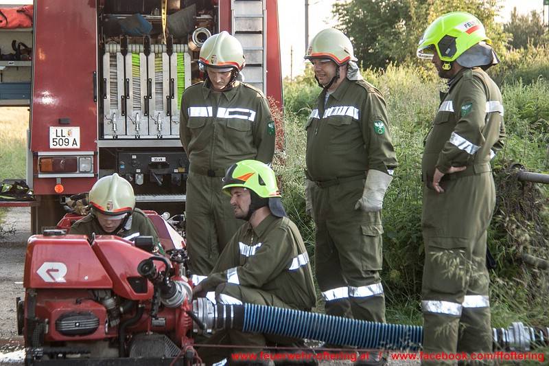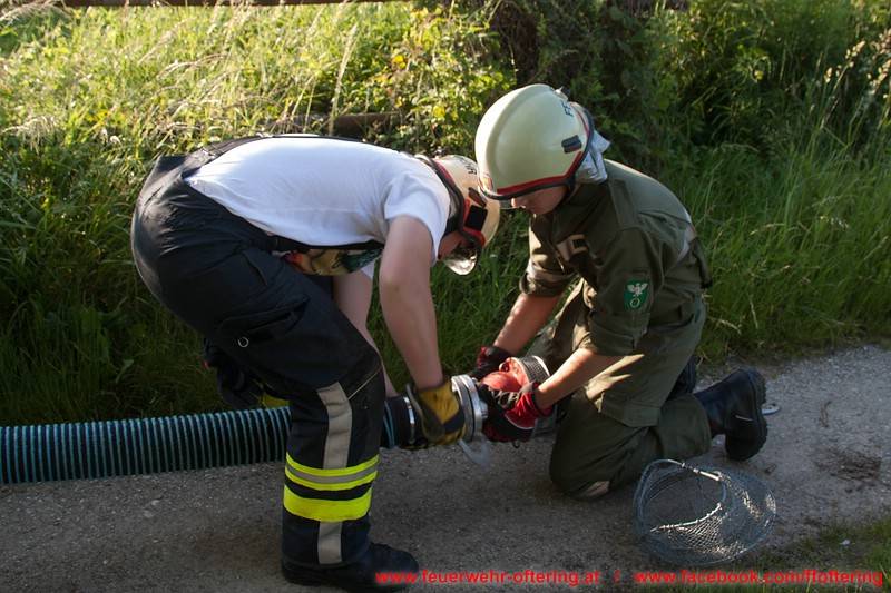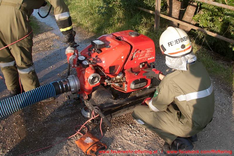 Die Wasserentnahme aus offenen Gewässern im Gemeindegebiet wurde bei der Gruppenübung im Juni beübt, der Haidbach bot beste Voraussetzungen dafür.