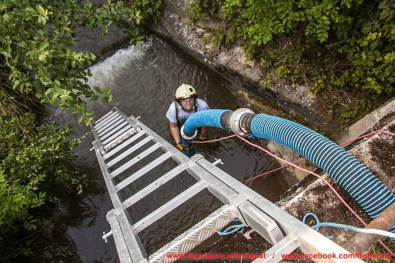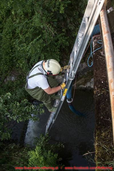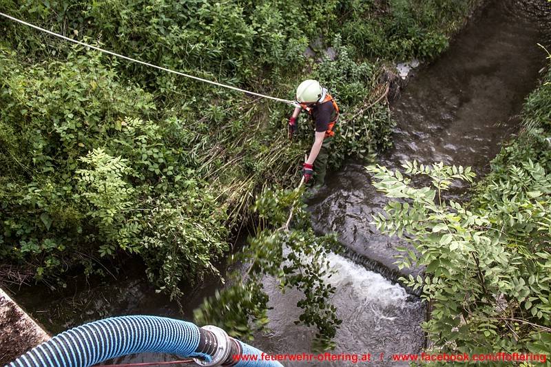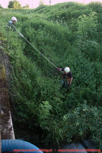 Jede Gruppe hatte weiters die Aufgabe, auf unterschiedliche Art und Weise in das Bachbett zu gelangen, um den verstopften Saugkorb zu reinigen.