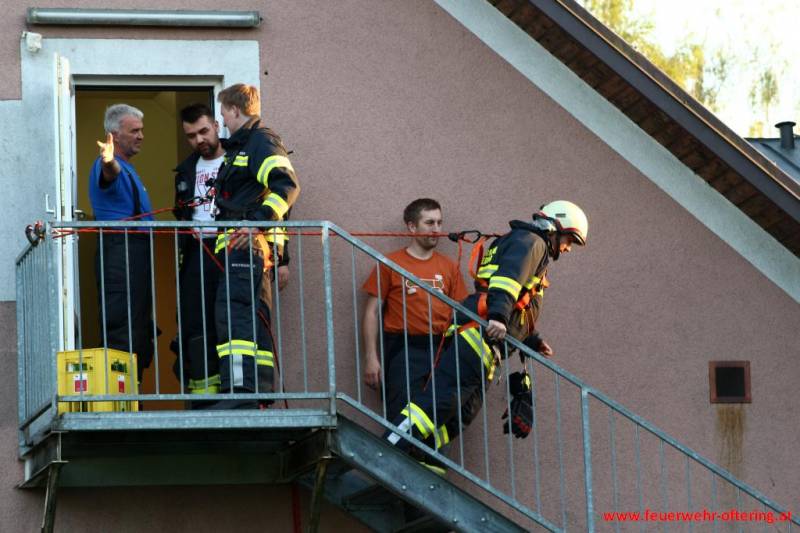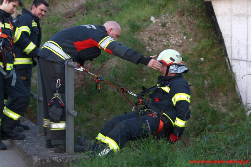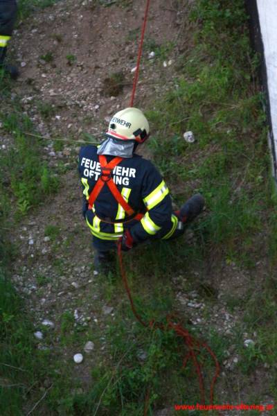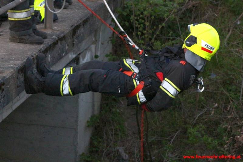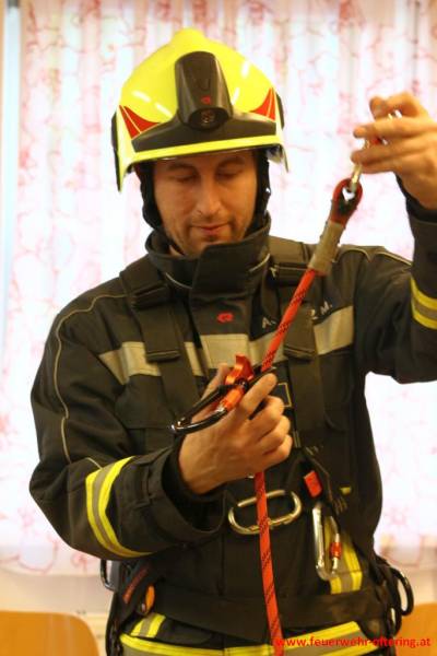 Der richtige Umgang mit den Gerätschaften, die richtige Sicherung, sowie das Gefühl in einem beschränkten Aktionsradius arbeiten zu müssen, waren Teil der Ausbildung im Freien. Nachdem noch etwas Zeit blieb, durften sich einige Kameraden noch abseilen, was grundsätzlich nicht Aufgabe der normalen Feuerwehr ist, sondern den Spezialisten der Höhenrettung, und damit speziellen Stützpunktfeuerwehren, vorbehalten bleibt.