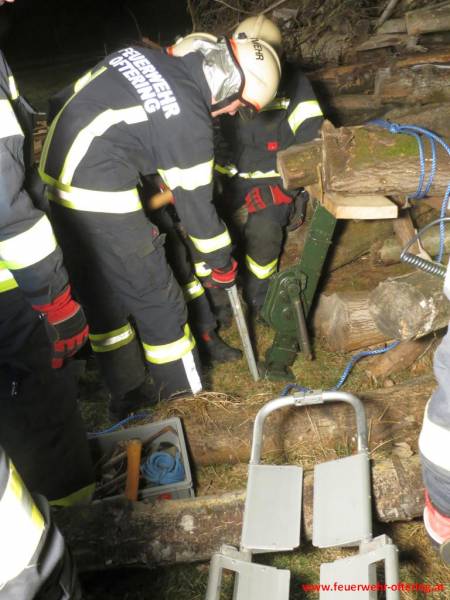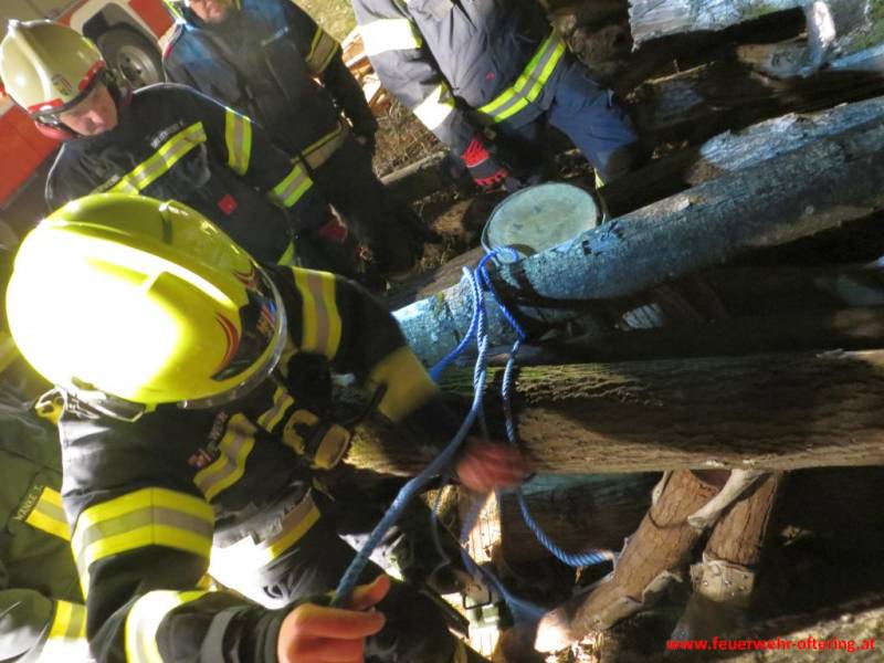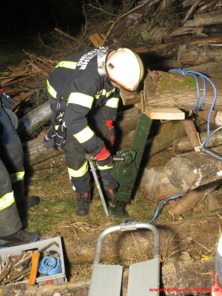 Holzi sollte mit einer Winde und weiteren einfachsten, zur Verfügung stehenden Mitteln, Grundwissen und Hausverstand gerettet werden. Die Fixierung der Winde auf weichem Untergrund stellte schon eine Herausforderung dar, da an alles gedacht wurde, nur nicht an Erdnägel.
