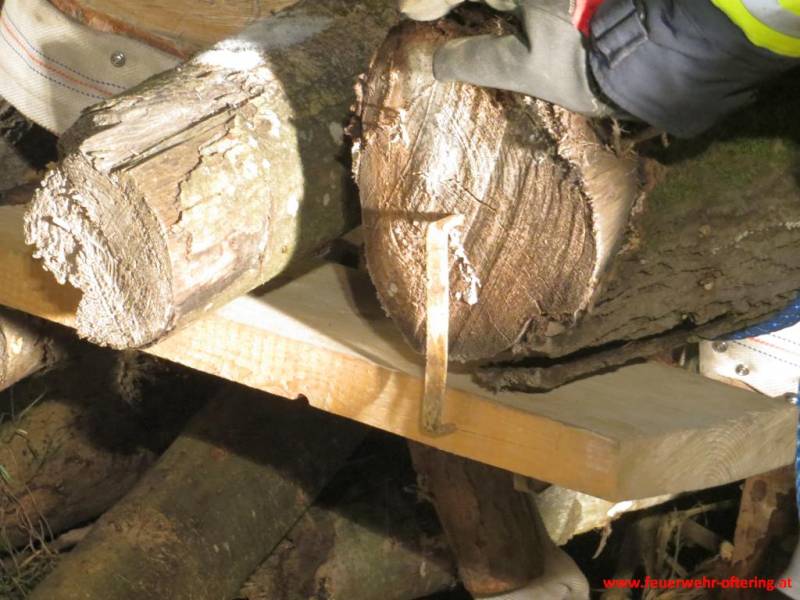 Unsere Holzpuppe „Holzi Holzkopf“ wurde bei Forstarbeiten von mehreren Baumstämmen eingeklemmt und schwer verletzt.