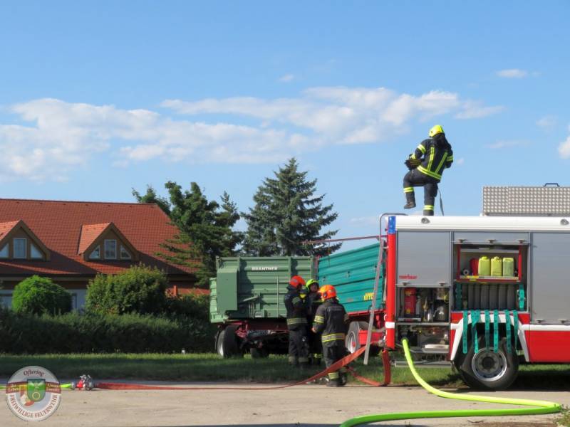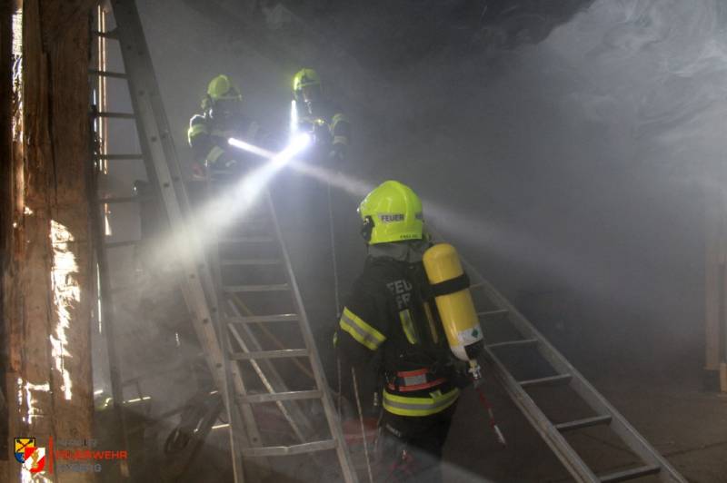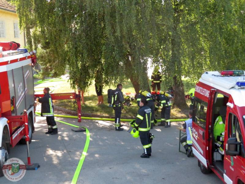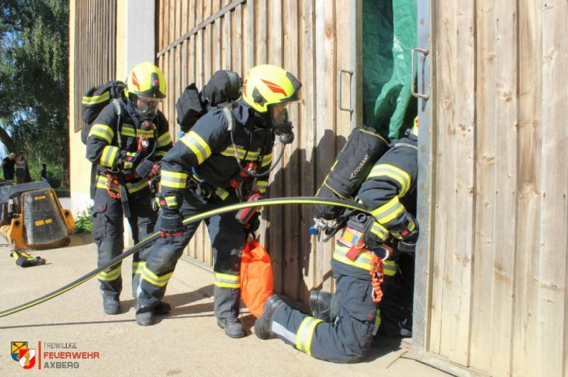 Die jährliche 3er-Übung der Feuerwehren Axberg, Freiling und Oftering wurde diesmal von der FF Axberg veranstaltet. Annahme war ein Brand in einer Maschinenhalle eines landwirtschaftlichen Objekts, mit mehreren vermissten Personen.