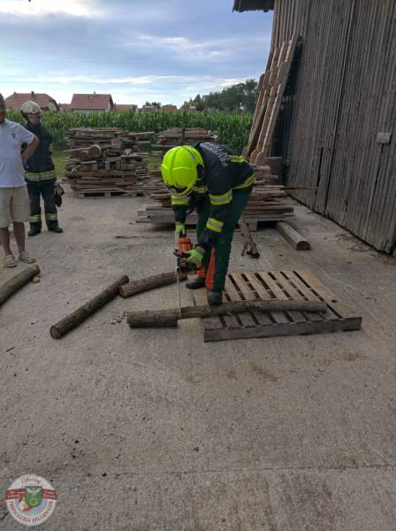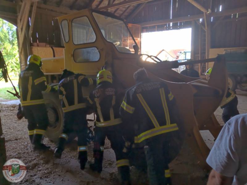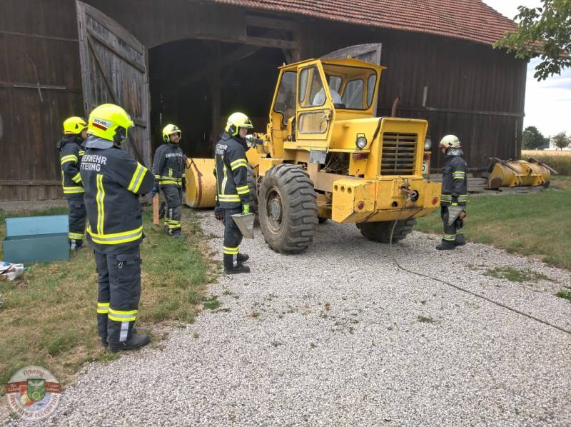 Mittels Greifzug und diverser vorhandener Hilfsmittel musste das Fahrzeug aus dem brennenden Stadl gezogen werden. Um die Intensität bei jedem Durchgang zu steigern, wurde die Schaufel des Radladers in unterschiedliche Stellungen gebracht. Jedes Mittel war erlaubt, nur das direkte Rausziehen mit dem LFB nicht.