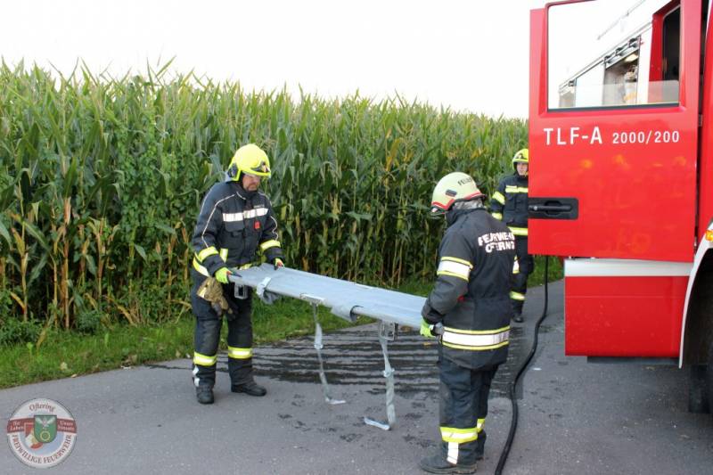Da eines der Fahrzeuge zu rauchen begann, musste der angerückte Atemschutztrupp schnell reagieren. Um die Anforderung etwas zu erhöhen, wurde eine virtuelle Mauer "errichtet", wodurch der Zugang zu einem KFZ nur durch den Kofferraum möglich war.