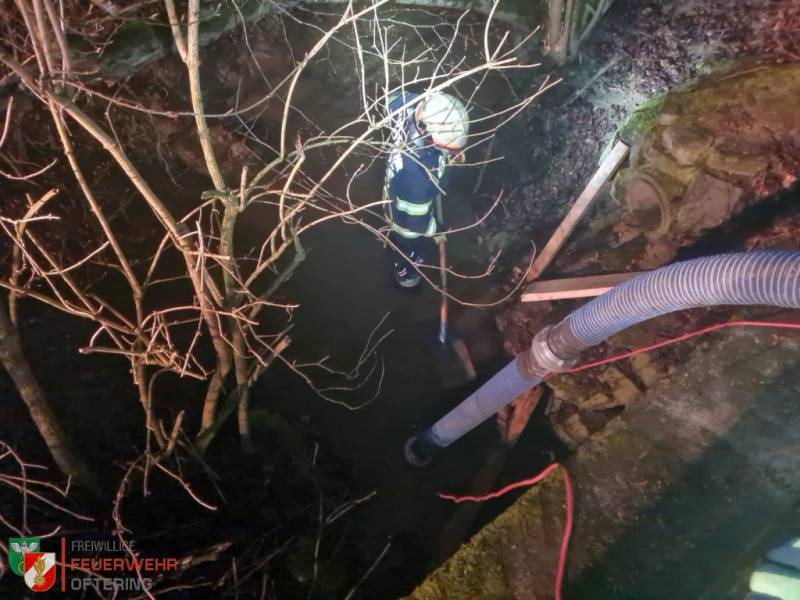 Als erstes musste eine stabile Wasserversorgung hergestellt werden, die im Falle eines Brandes Grundvoraussetzung für die erfolgreiche Brandbekämpfung ist. Um die Übung etwas anspruchsvoller zu gestalten, wurde eine Stelle eines Baches gewählt, bei der auch Hand angelegt werden musste, um an genügend Wasser zu kommen.