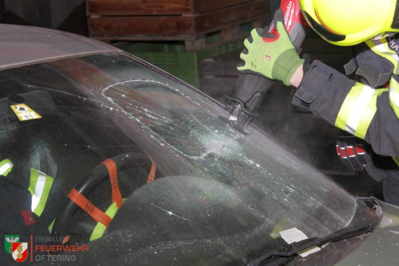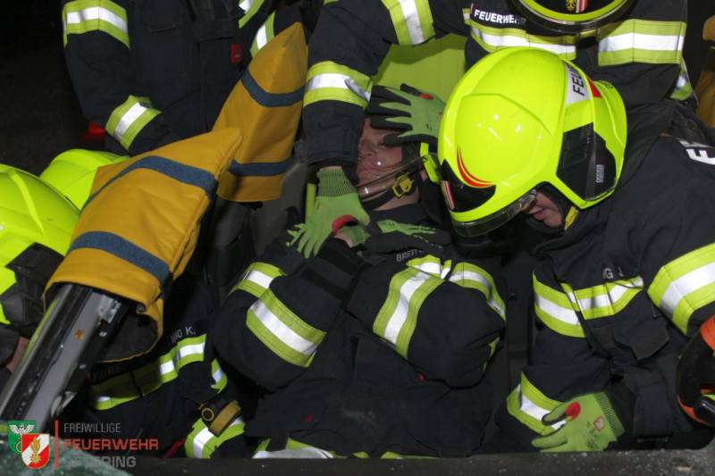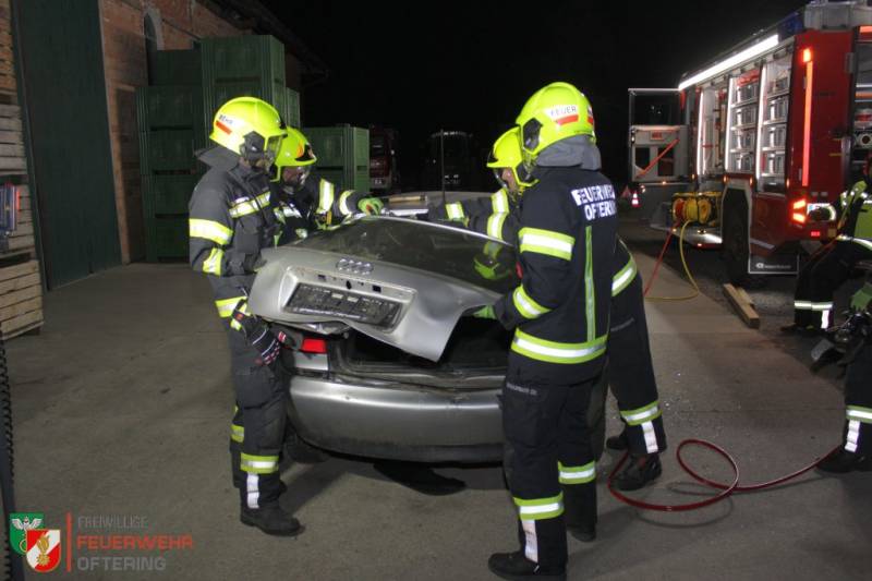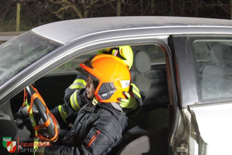 Ein dreitüriges Fahrzeug durfte diesmal als Übungsobjekt dienen. Im Fokus stand die schnelle aber schonende Rettung der verunfallten Personen.
